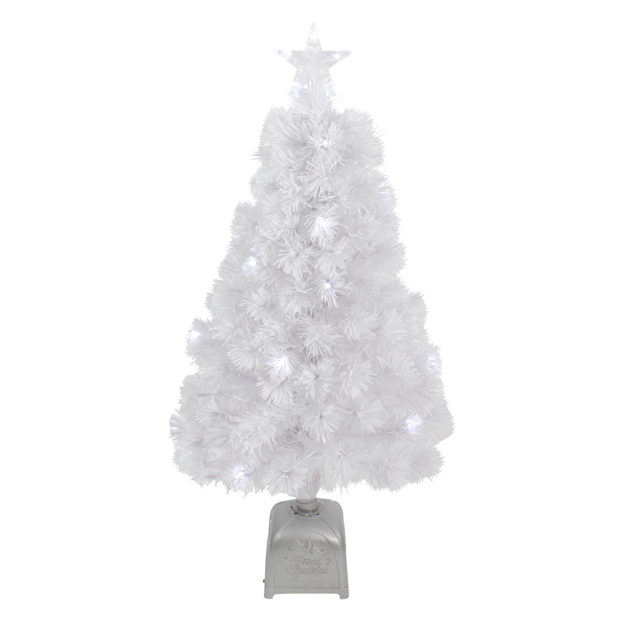 Includes an attached silver tree stand with an on/off switch