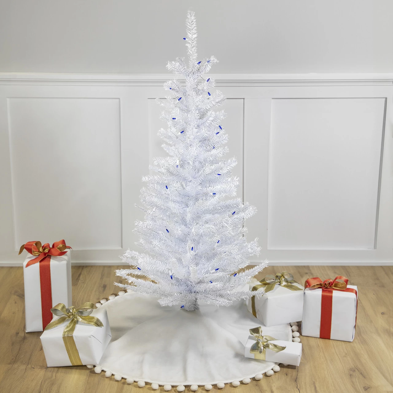 Dimensions: 4′ high (from the base of the stand to the top of the tree)
