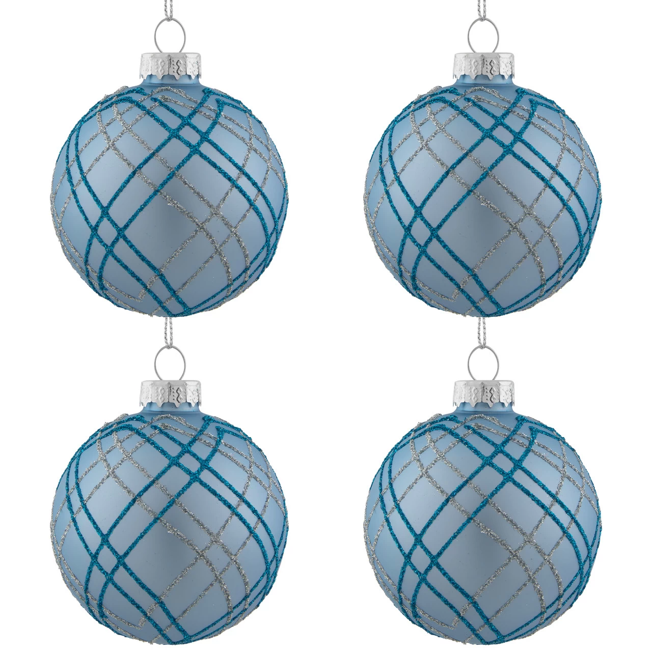 Balls are equipped with silver ornament caps (ornament hooks are not included)