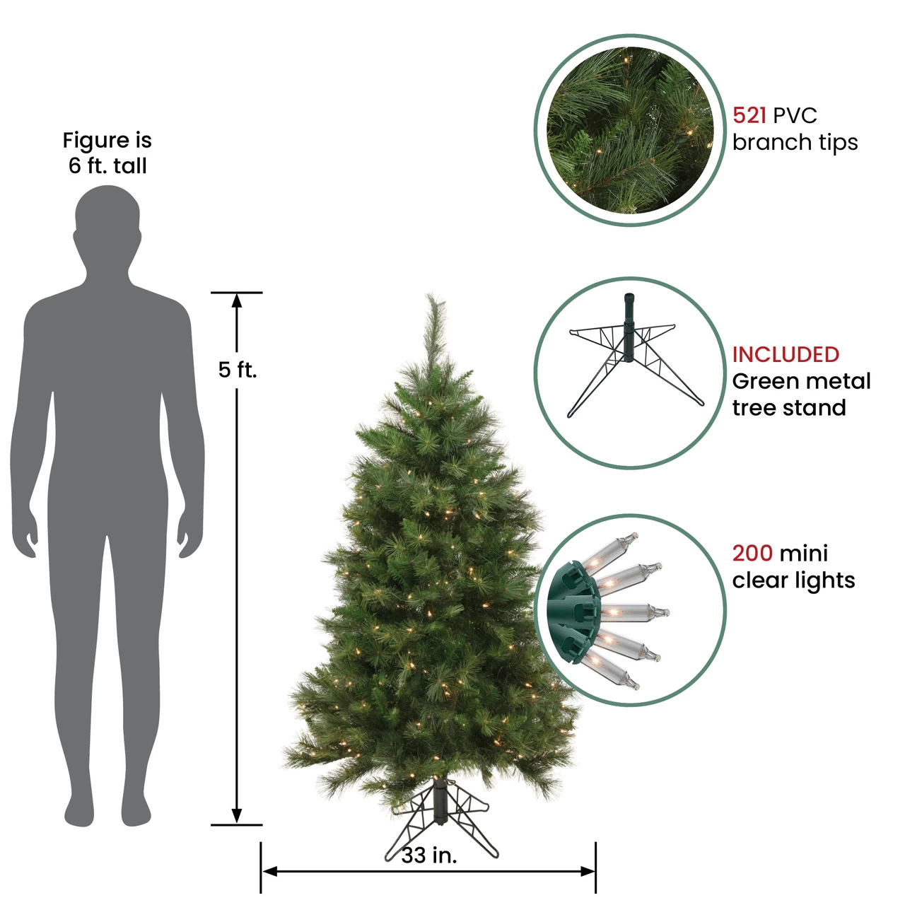 Dimensions: 5′ high (from the base of the stand to the top of the tree)