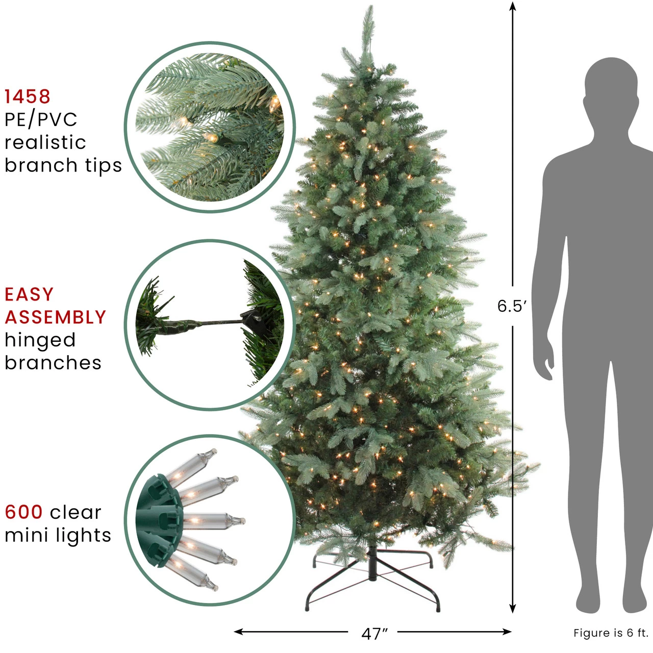 Dimensions: 6.5′ high (from the base of the stand to the top of the tree)