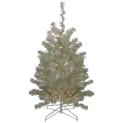 3′ Metallic Platinum Artificial Tinsel Christmas Tree – Clear Lights