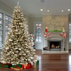 7.5′ Pre-Lit Snowy Hamilton Spruce Artificial Christmas Tree, Cool White LED Lights