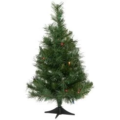 2′ Pre-Lit Medium Canadian Pine Artificial Christmas Tree- Multi Lights, Green Wire