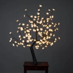 47.25″ White And Black Outdoor Cherry Blossom Tree With Floral Lights