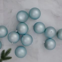 12ct Light Blue Glitter Textured Glass Christmas Ball Ornaments 1.75″ (45mm)