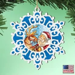 Set Of 2 Santa Claus In A Christmas Tree Wooden Ornaments 5.5″