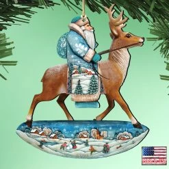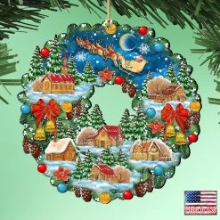 Set Of 2 Santa Ride Around The World Wreath Wooden Christmas Ornaments 5.5″