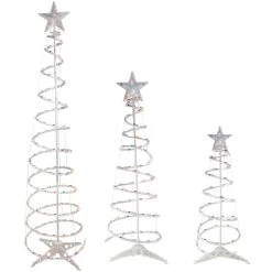 Set Of 3 LED Lighted Warm White Outdoor Spiral Christmas Cone Trees 3′, 4′, And 6′
