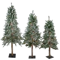 Set Of 3 Pre-Lit Slim Woodland Alpine Artificial Christmas Trees 5′ – Multicolor Lights
