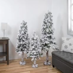 Set Of 3 Pre-Lit Woodland Alpine Artificial Christmas Trees 5′ – Clear Lights