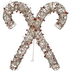 25″ Lighted Champagne Gold Glittered Rattan Double Candy Cane Christmas Outdoor Or Window Decoration