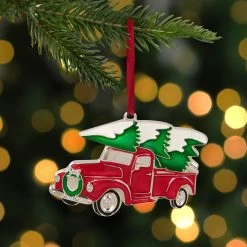 3.5″ Red And Silver Country Pick Up Truck With European Crystals Christmas Ornament
