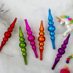 6ct Vibrantly Colored Matte Glass Christmas Finial Ornament 6.25″